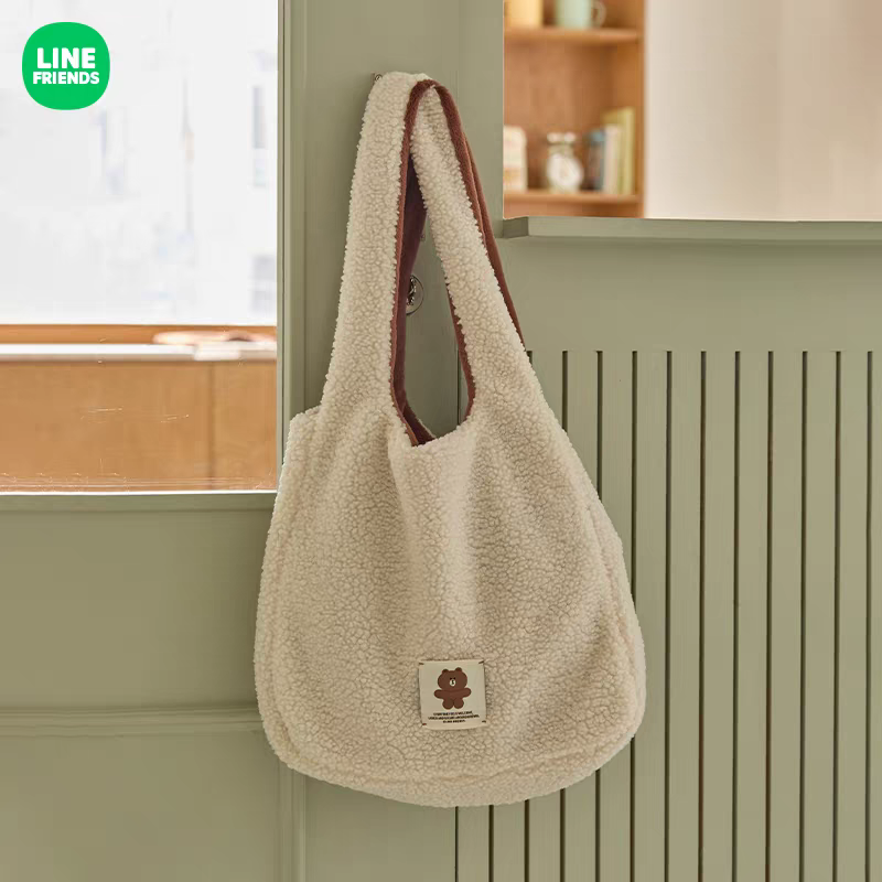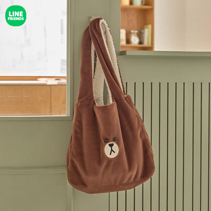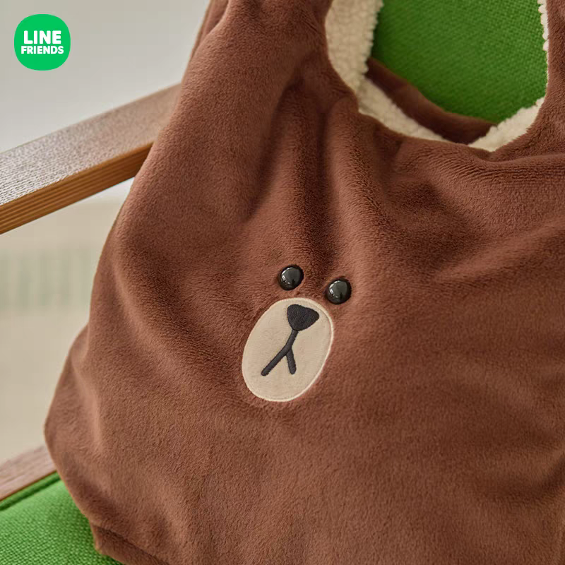 Line Friends Hug Brown系列熊大毛絨雙面手袋 Brown handbag